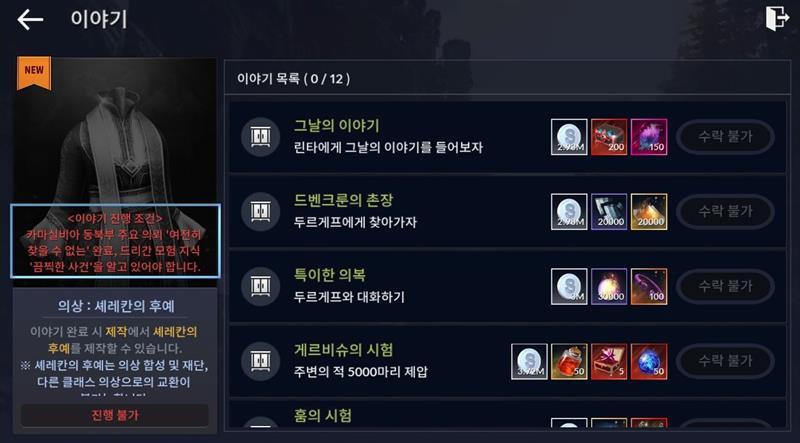 [검은사막M] 의상 이야기: 셰레칸의 후예 (퀘스트 진행의 모든 것)