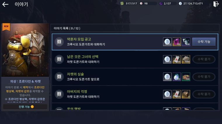 - 신규 이야기 '의상 : 조르다인 & 자렛'을 추가하였습니다.